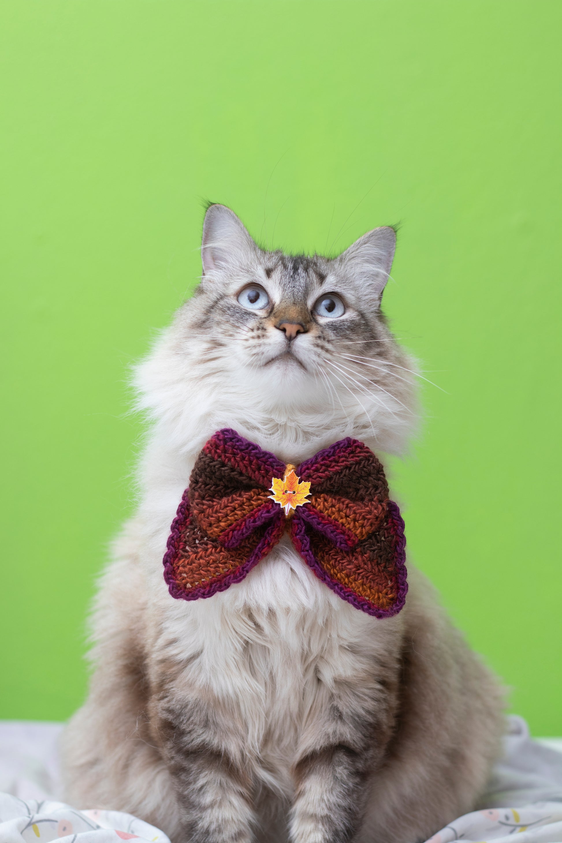 Important: These bowties are intended to be stylish and fun for you and your cat. For safety, always supervise your cat at all times while they are wearing this product. The yarn is very delicate and their sharp claws or teeth can damage it.