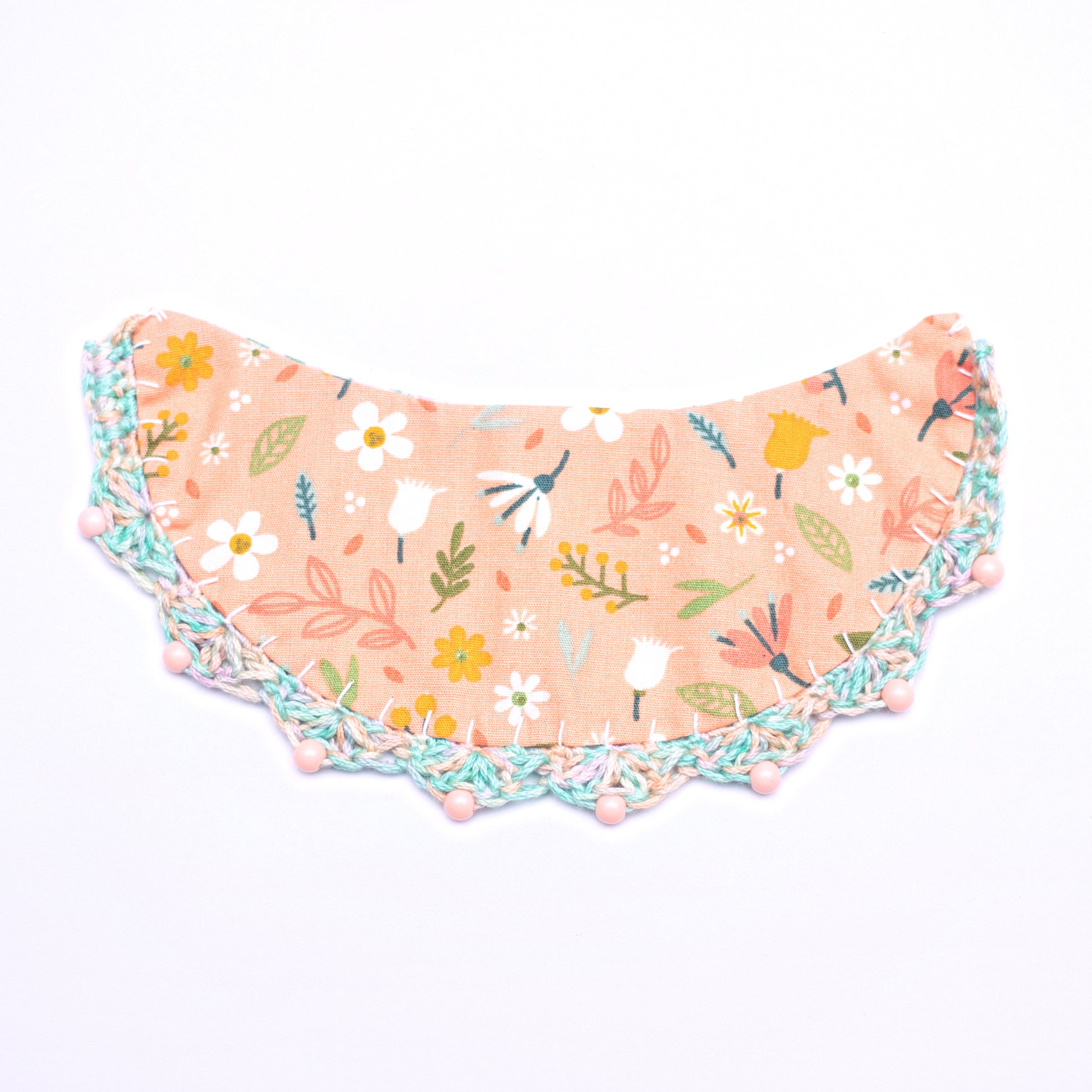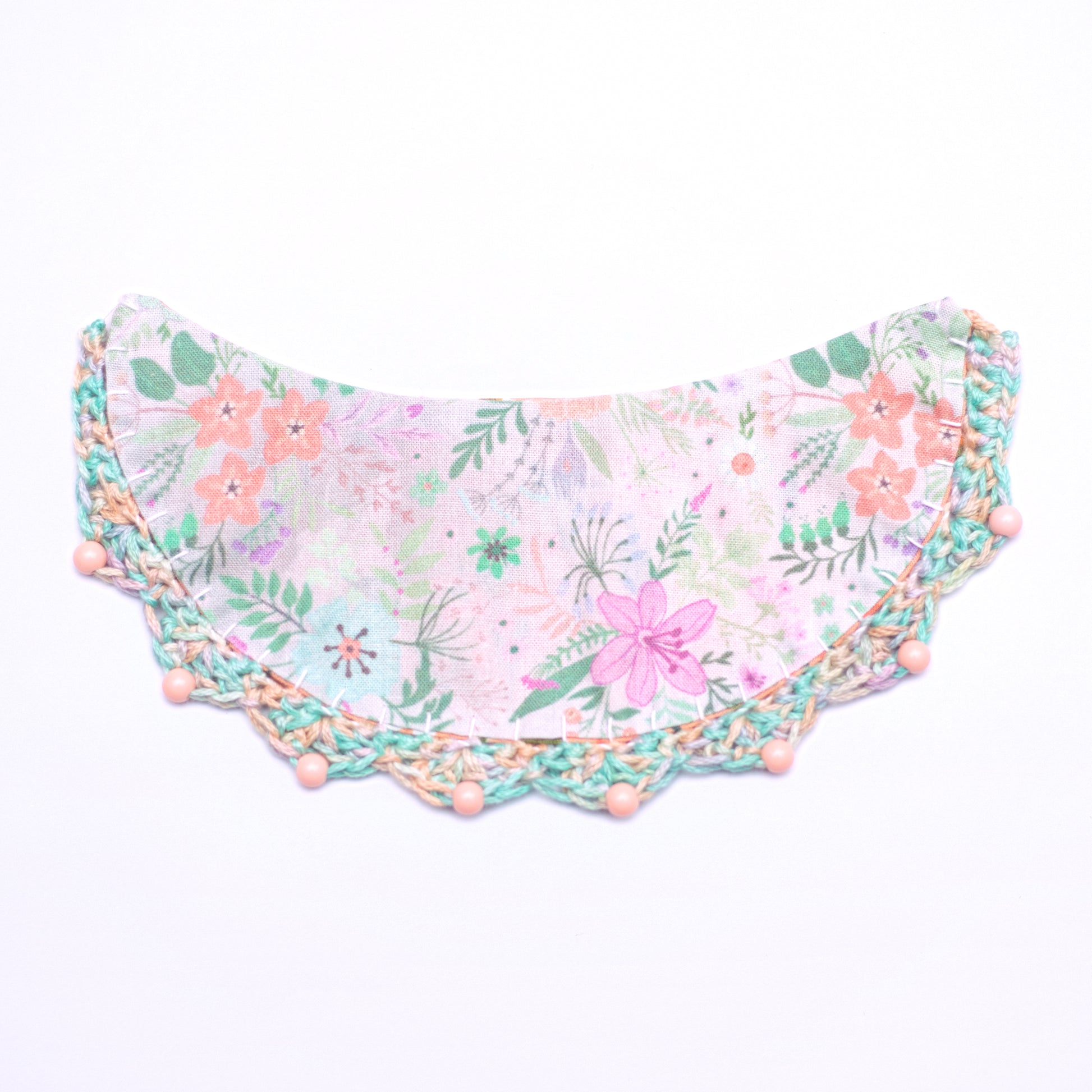 This reversable collar comes with a buttoned crochet collar or crochet strings.
