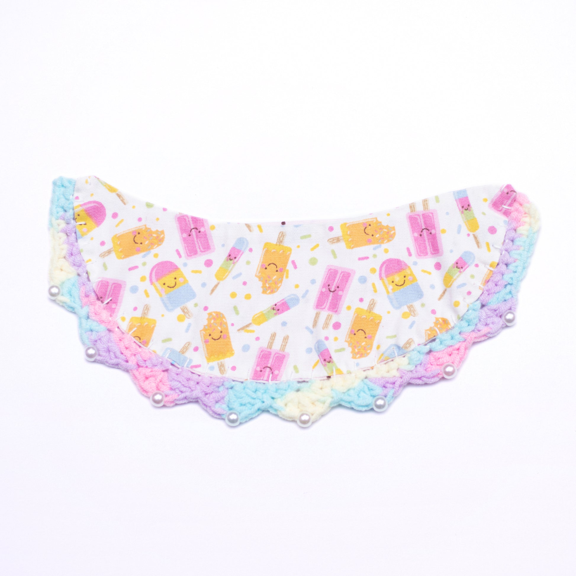 This reversable collar comes with a buttoned crochet collar or crochet strings.