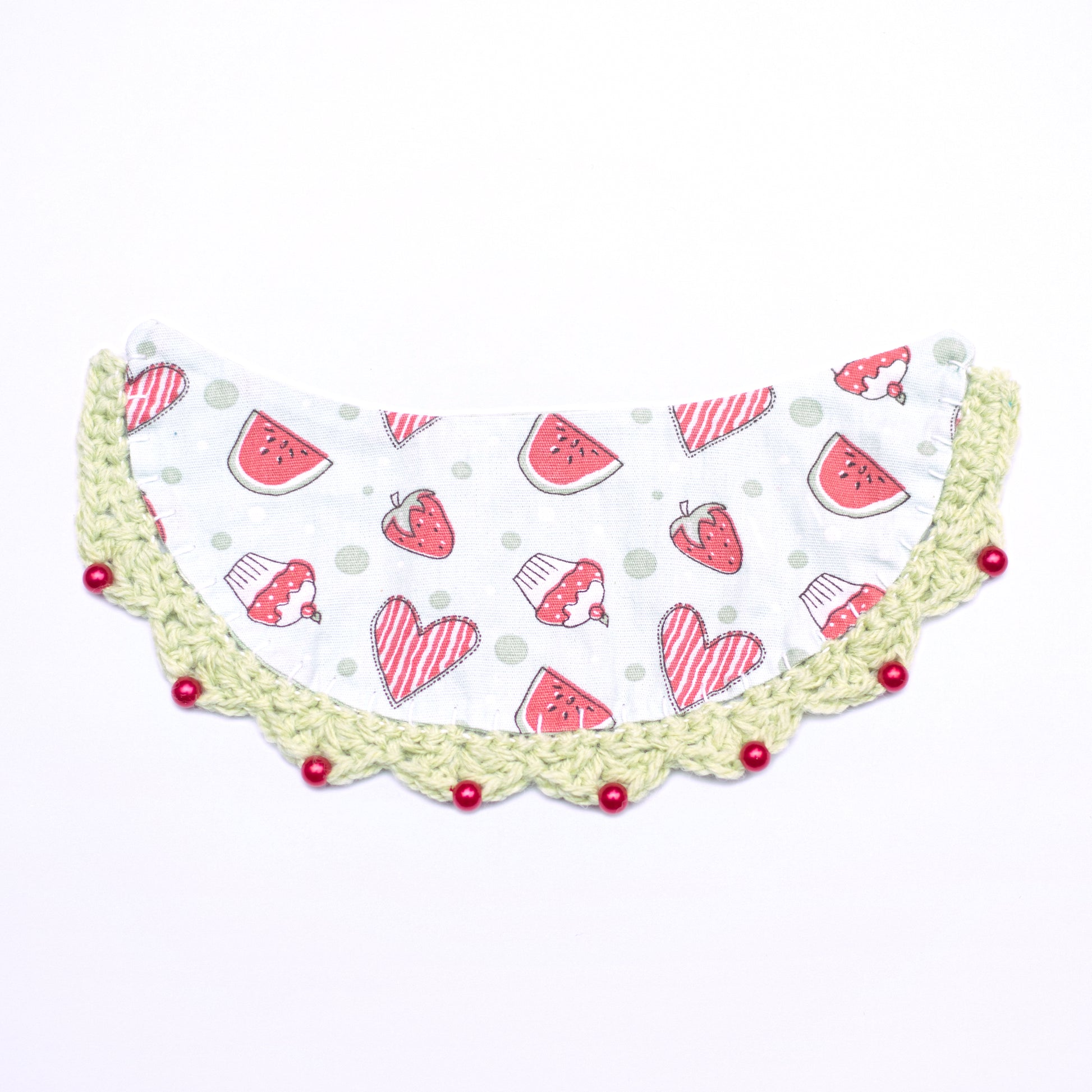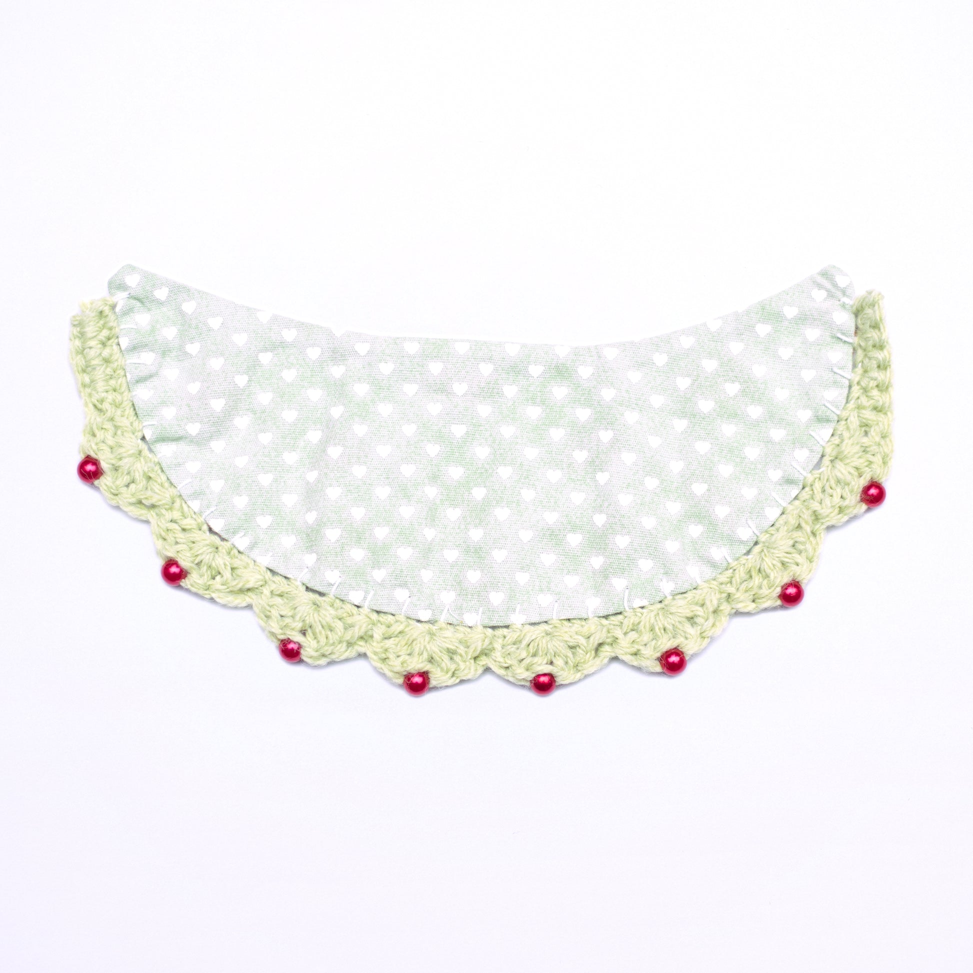 This reversable collar comes with a buttoned crochet collar or crochet strings.