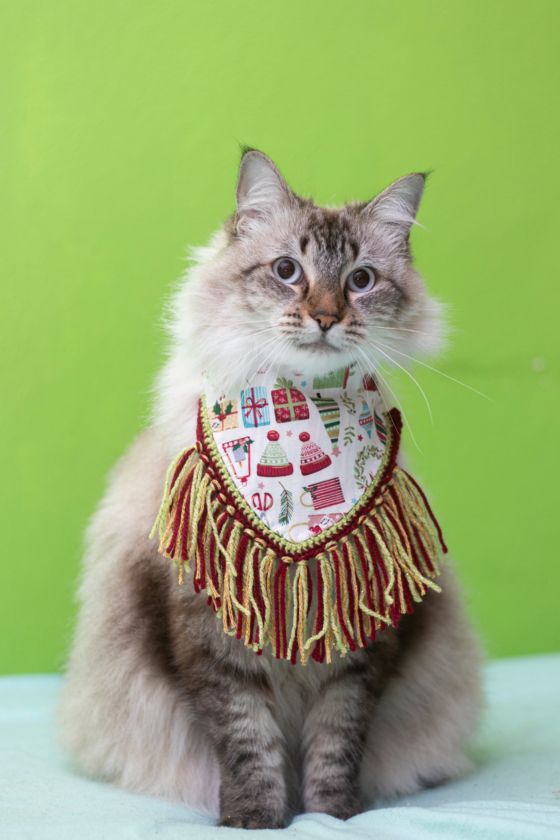Important: These bandanas are intended to be stylish and fun for you and your cat. For safety, always supervise your cat at all times while they are wearing this product. The yarn is very delicate and their sharp claws or teeth can damage it.